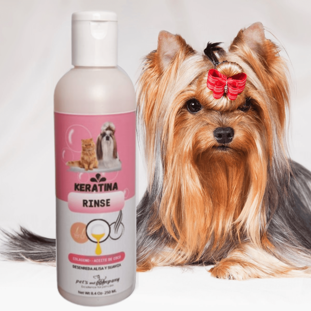 No esperes más y dale a tu mascota el cuidado que se merece. Prueba el Rinse Keratina que deja suave y brillante el pelo de tus mascotas.
