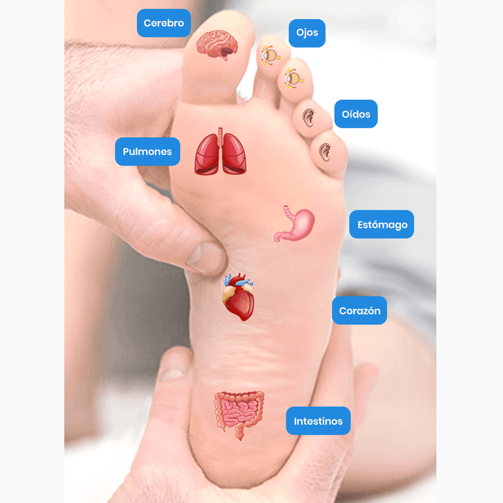 Los puntos de acupuntura en la planta del pie corresponden a cada órgano interno, el masaje de pies en estos puntos puede ayudar a mejorar la salud.